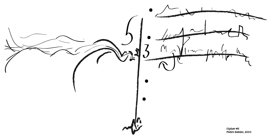 Cipher Series is a collection of graphic scores that are displayed to audience and performers in accordance to a fixed temporal structure generated for each performance. The performance plays on the role of notation as a mediator of listening, setting up a performative condition based on interpretative strategies based on engagement by both the performer and the audience. The change from one graphic score to the next has immediate formal implications for the music and acts as a way of articulating shifts in musical material or interpretation strategy.