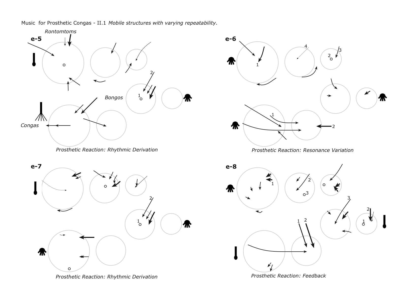 The idea of prosthesis is taken as a metaphor for the electroacoustic extension of a musical instrument. Prosthetics often suggest replacement or extension of capabilities through artificial elements. They articulate inherent functions of the body while also implying notions of adaptation, reaction or rejection. The relationship between the body which hosts and the prosthesis which inhabits or replaces can be complementary but also allergic; the host can reject the prosthesis… “Music for Prosthetic Congas” explores modes of articulation that, although inherent in the instrument, cannot be released without the aid of electronics. The Conga is treated as a resonant space which is activated by electronic signals based on the spectrum of the instrument. The technique utilized here opens up possibilities for transformation of decay times and spectral content while taking advantage of the instrument as resonating body and as performative material. Concept and software were developed with Maarten van Walstijn at SARC.