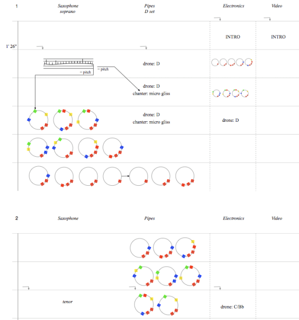 Illusion of Control is the result of a collaborative project that began in June this year when audio-visual artist Brian Cullen (Ireland), Uilleann piper Ivan Goff, (New York), composer/digital artist Pedro Rebelo (SARC, Belfast), and saxophonist/improviser Franziska Schroeder (SARC, Belfast) came together for initial discussions and source recordings for this work. Video footage, sound recordings from the pipes and the saxophone as well as drawings were taken during this stage, and the artists agreed on a timeline for rehearsals and general development stages of the work. After months of ‘virtual’ discussions and the passing back and forth of musical and visual ideas, the four artists reunited at the beginning of this week to put together the final piece. Tonight’s performance is the outcome of this process which results in an audio-visual performance with live music investigating the interaction of sounds, narrative, and visible/physical forms in real and virtual environments. The work is an exploration of the musical territory situated between contemporary music and Irish Traditional music practice.The work was commissioned by Franziska Schroeder with the aid of an Arts Council Northern Ireland Grant.