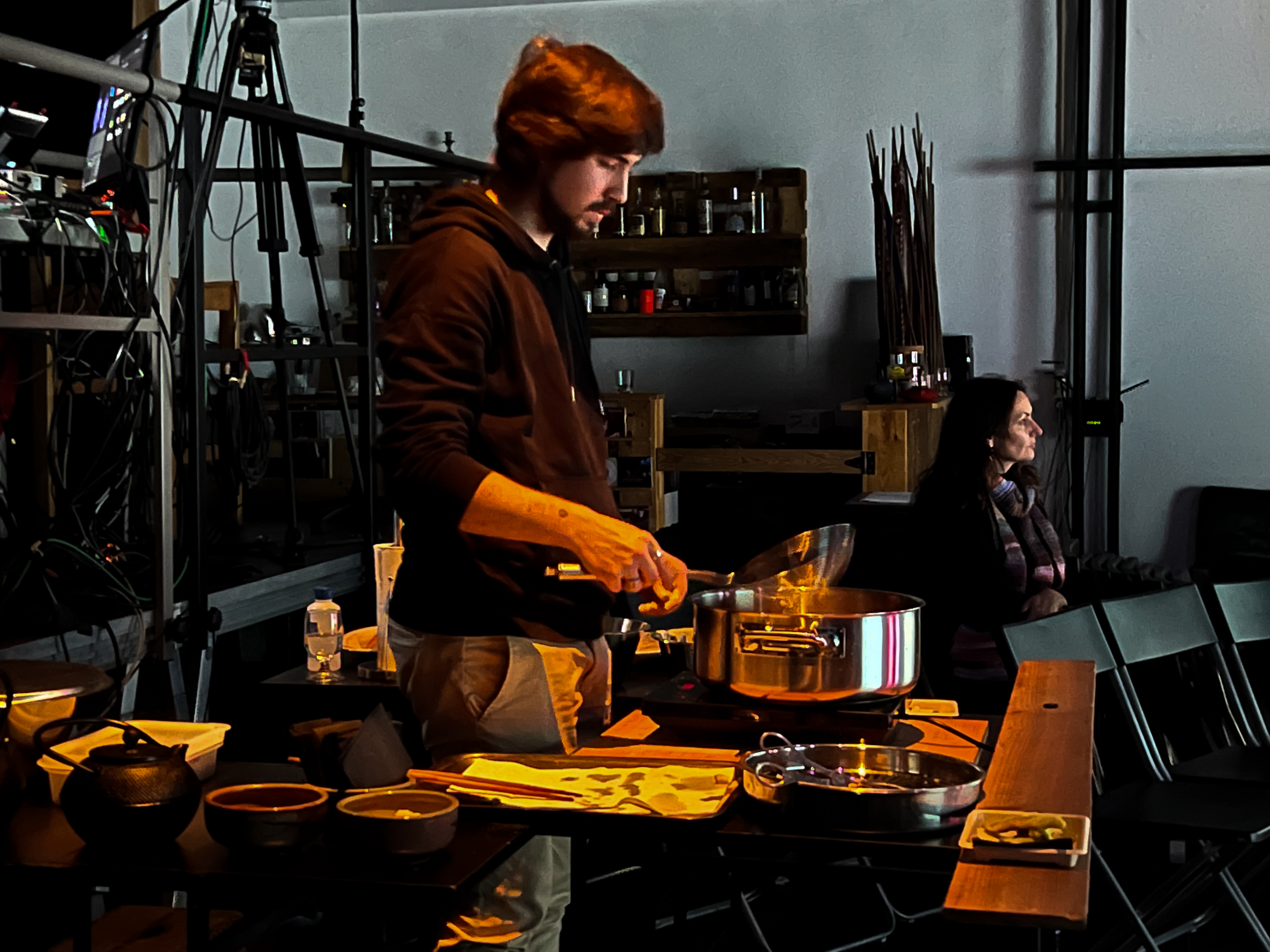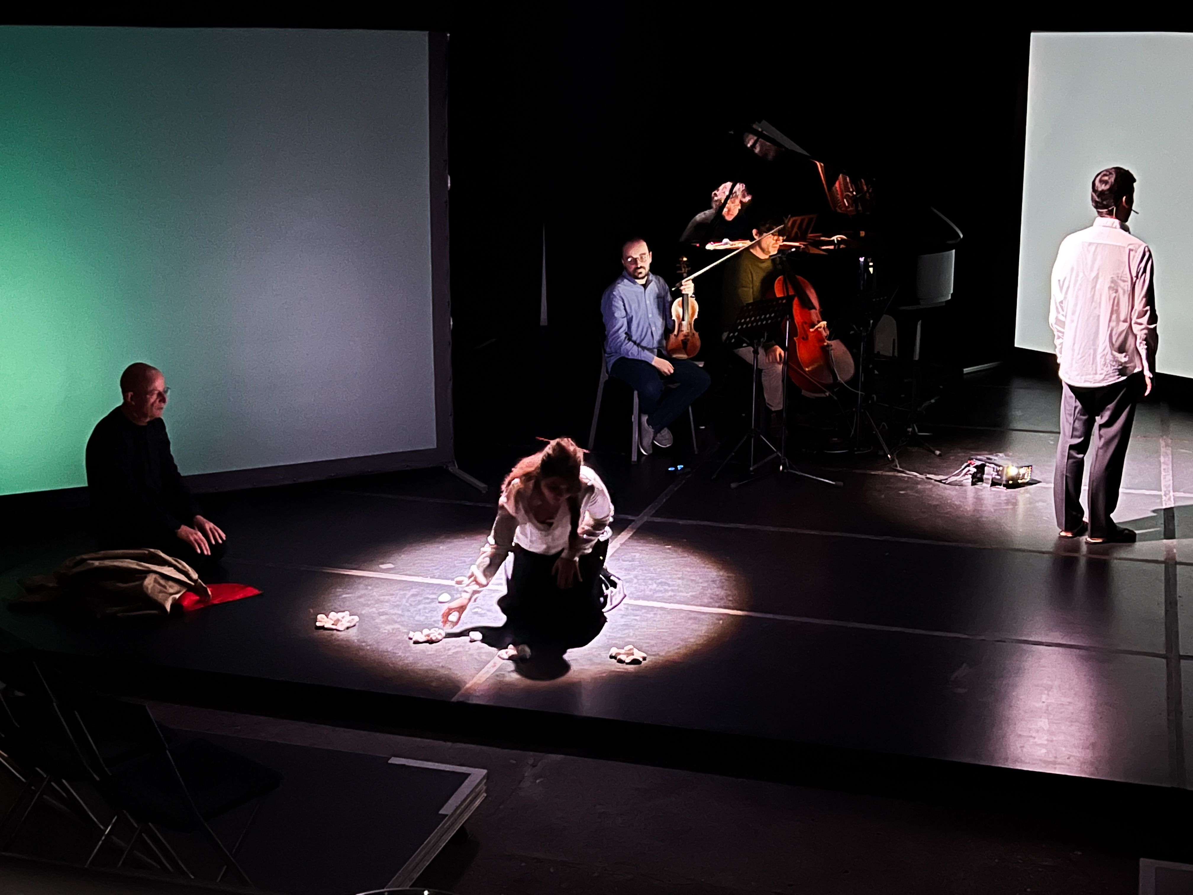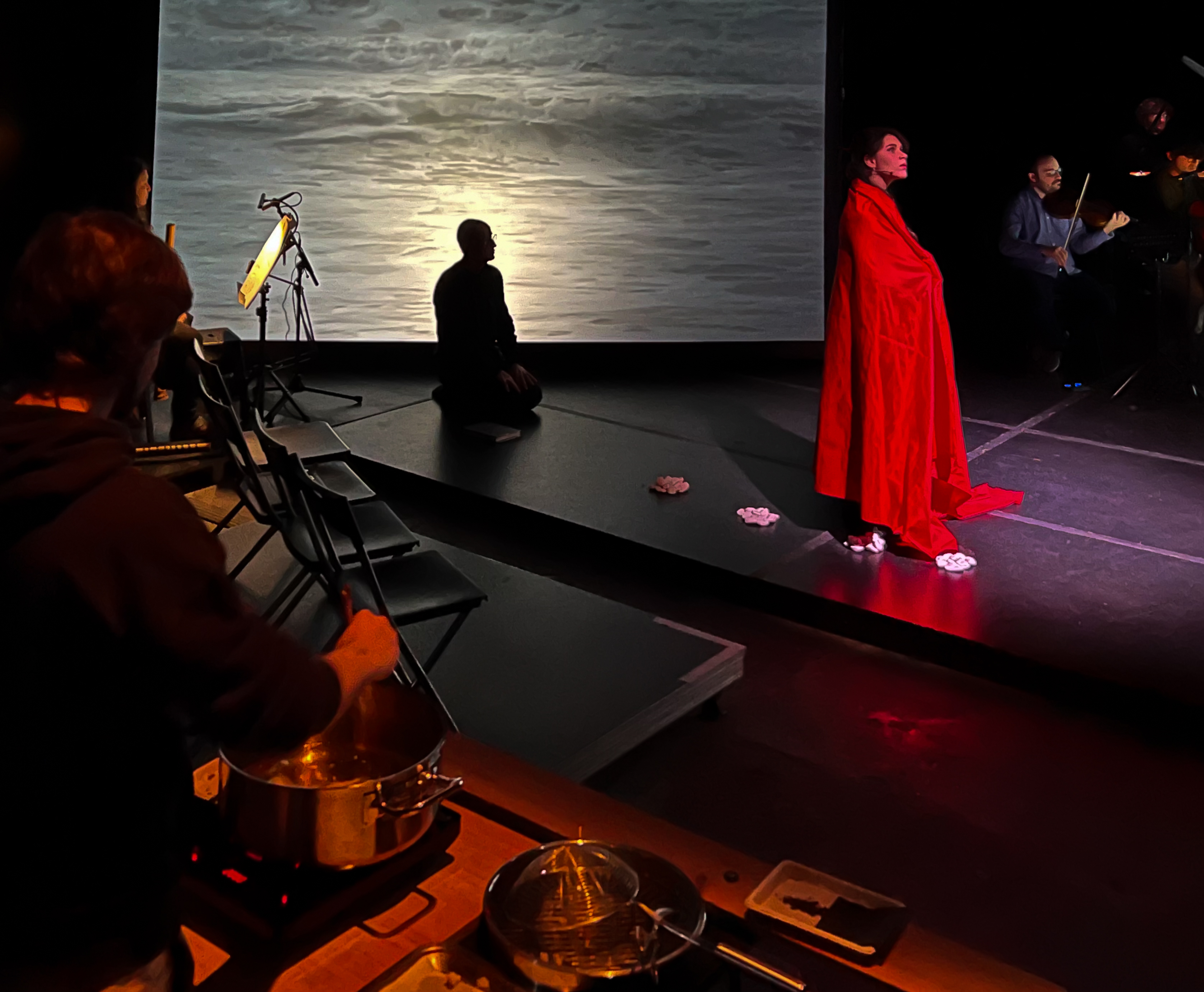 The opera is scored for Soprano, Baritone, Narrator, Flute, Clarinet, Violin, Cello, Piano, Percussion, Shakuhachi, Electronics, 2 Channel Video and a chef. Commissioned by Music Music Portugal, with the support from Queen’s University Belfast